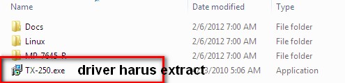 4. Jika bentuk driver masih di kompress dalam bentuk *.ZIP atau *.EXE, Maka anda harus mengeluarkan terlebih dahulu, dengan cara Double click. Kemudian tunggu sebentar dan perhatikan dimana tempat kompressannya, Jika bisa outomatis itu akan lebih bagus. CARI File seperti gambar diatas, (devices and printers) disitulah drivernya tersimpannya.