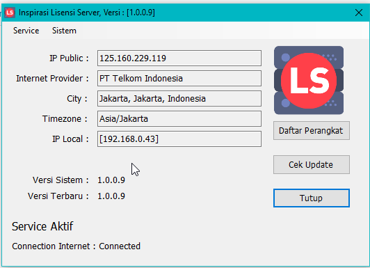 - Langkah yang harus anda lakukan, Buka program Inspirasi Lisensi Server di desktop, pada bagian bawah ada tulisan Service tidak aktif,