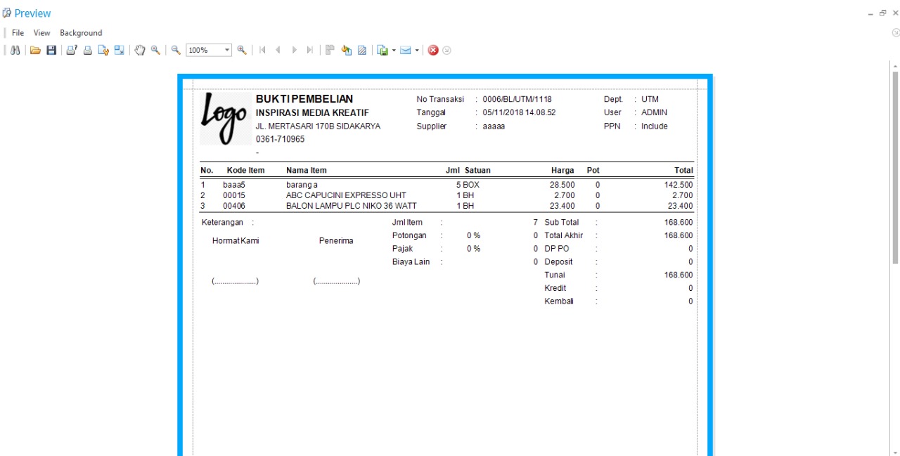 bukti pembelian
