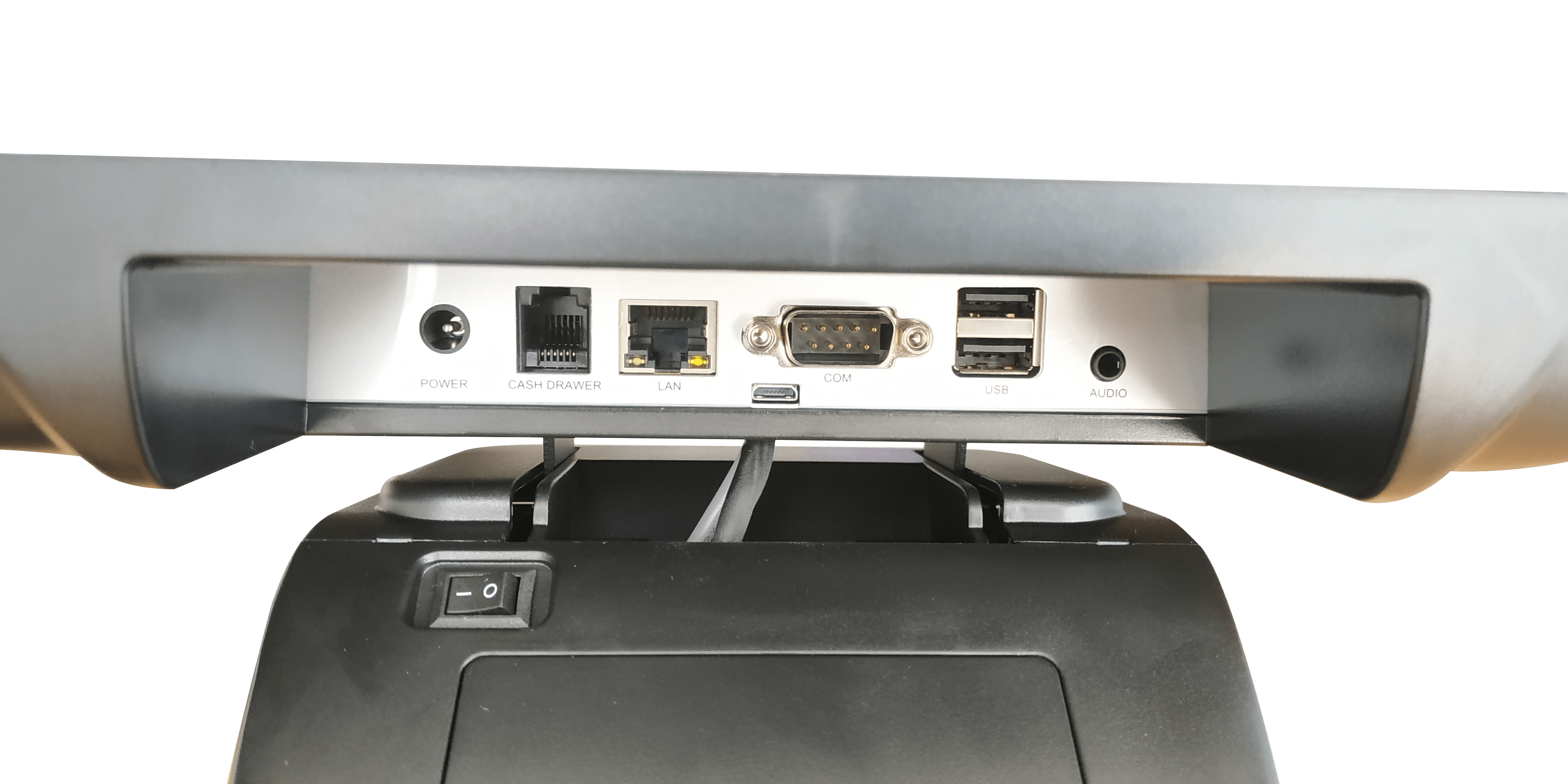 1x serial RS232, 2 USB 2.0, 1 OTG micro USB 2.0, 1 LAN RJ45 (10/100M), 1 RJ11 Cash Drawer 12V
