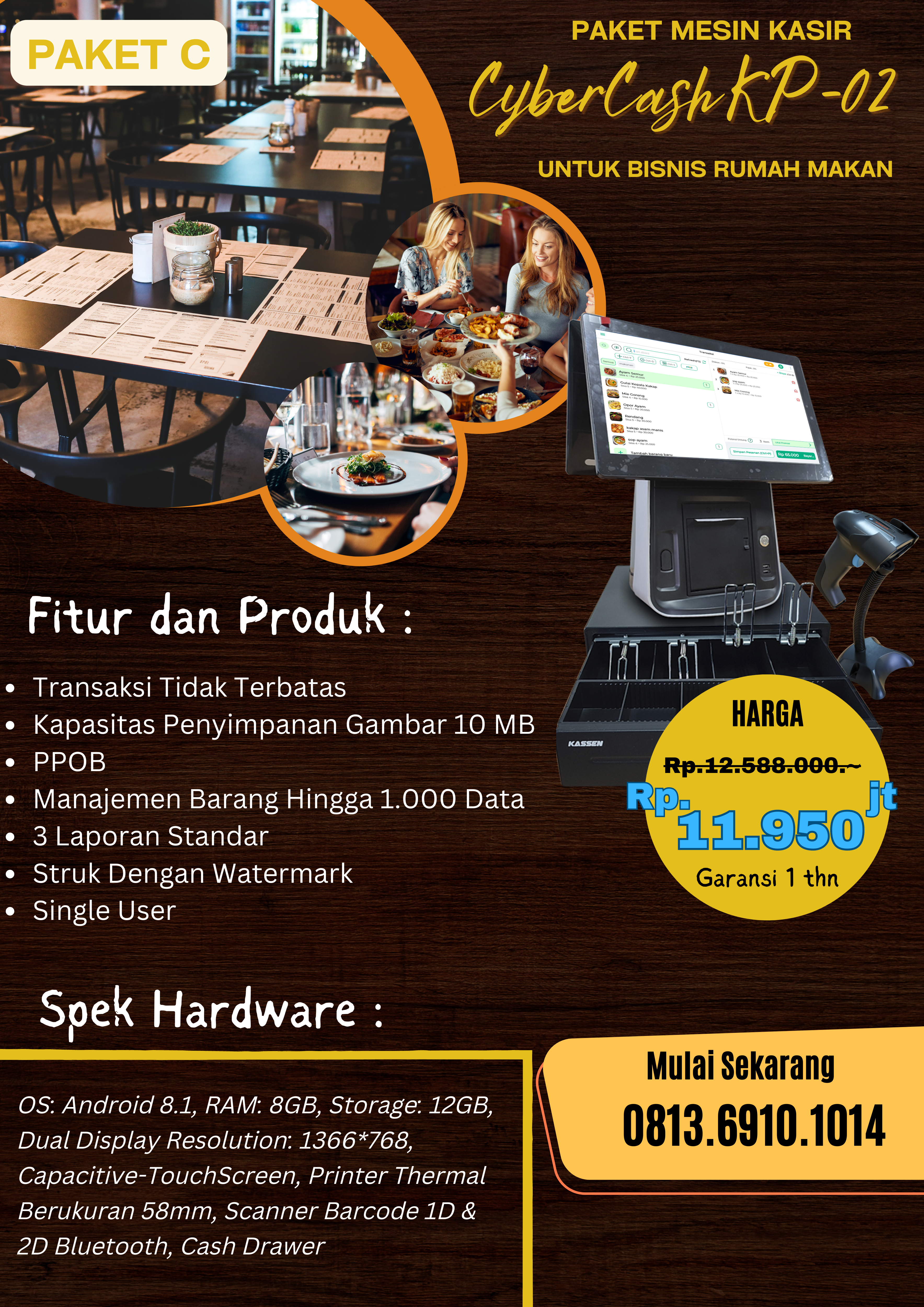MesinKasirCYBERCASH KP-02_BisnisRumahMakan_PaketC_1014